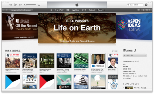 山中湖情報創造館のパブリックPCでは、インストールした iTunes により、iTunes U の学習コンテンツをご覧いただく事ができます。