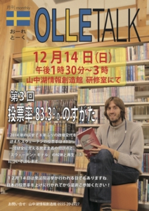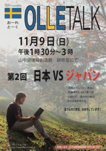スウェーデン出身のライブラリアン オーレ・ベリー(Olle Berg) が、比較文化論的見地から、日本の文化と世界の文化を語るトークイベント。映画のこと、アニメのこと、図書館のこと。あれやこれか語るとともに、参加いただいたみなさんとの交流の場でもあります。楽しいひと時を。